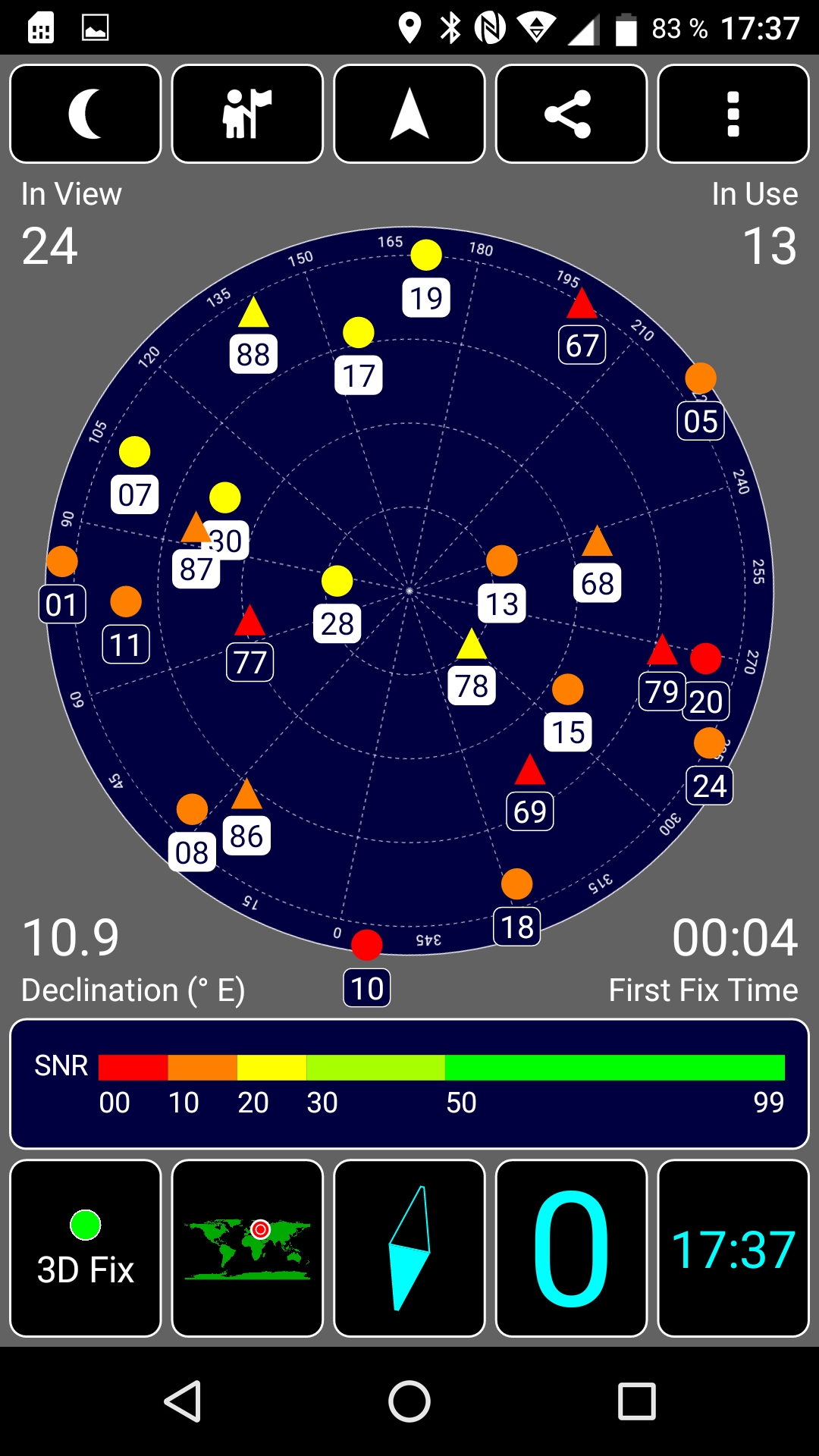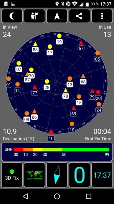 Навигационный модуль работает и с GPS (с A-GPS), и с отечественной Глонасс, без китайской Beidou. Первые спутники при холодном старте обнаруживаются в течение первой минуты. Магнитный компас, необходимый для навигационных программ, в аппарате имеется.