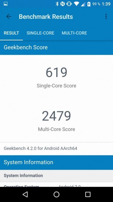 | GeekBench (v4.x) (больше — лучше) | 619/2479 | 672/2623 | 623/2321 | 757/2071 | 904/3513 |