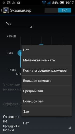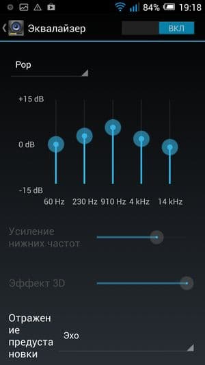 Кроме того, есть собственный музыкальный проигрыватель, который ничего особенного собой не представляет, предлагая из звуковых настроек эквалайзер и виртуальное расширение стереобазы.