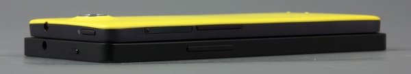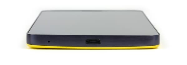 Помимо двух прикрытых магнитными крышками слотов для SIM-карт на боковых гранях еще имеются спаренная клавиша регулировки громкости, а также разъемы: Micro-USB в нижнем торце, и аудиовыход 3,5 мм на верхнем.