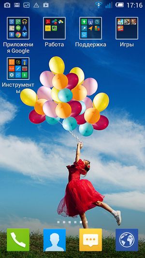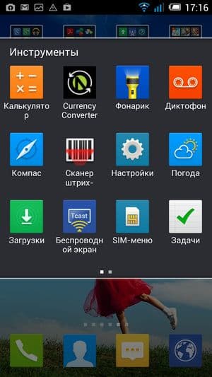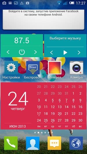 В качестве системы используется программная платформа Google Android версии 4.2.2 и сторонний пользовательский графический интерфейс, значительно видеоизменяющий внешний вид и привносящий заметные изменения во внутреннее строение и всю организацию работы с системой в целом. Здесь, как и у многих китайских продуктов, напрочь отсутствует меню приложений как таковое, и все иконки установленных приложений просто размещаются на рабочих столах, как у незабвенной MIUI. Естественно, имеется возможность создания папок, и сам разработчик, в принципе, уже «причесал» как мог внешний вид рабочего пространства: большинство программ заботливо разложено по тематикам. Есть и целый набор красочных функциональных виджетов — интерфейс пестрит разноцветием, но теперь это уже становится модным.