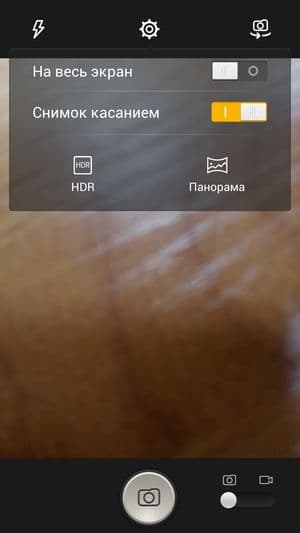 Настроек по управлению съемкой очень немного — в основном возможности отданы на откуп автоматике. Съемку можно производить как нажатием на виртуальную иконку на экране, так и задействуя аппаратную качель регулировки громкости — в этот момент она работает в качестве фотокнопки. Снимать фото во время видеосъемки здесь нельзя.