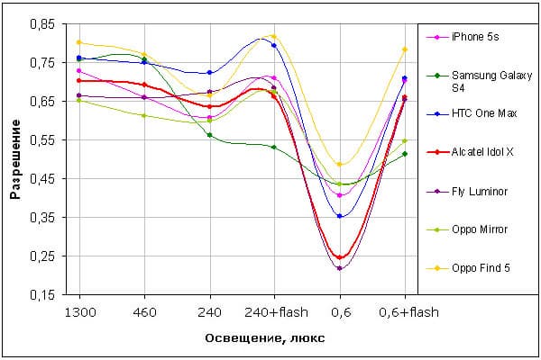 | Alcatel OT Idol X | Fly Luminor IQ453 | Oppo Mirror R819 | LG Optimus G | Google Nexus 4 | Sony Xperia ZR | |