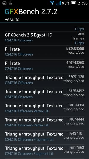 По результатам полученных в ходе тестирования данных, система Alcatel OT Idol X продемонстрировала вполне ожидаемые средние показатели производительности, на уровне других ранее протестированных нами устройств, работа которых организована на той же самой платформе. В природе имеется еще и обычная версия MediaTek MT6589 с рабочей частотой ядер не 1,5 а 1,2 ГГц (на ней основан, например, Oppo Mirror R819), и сравнение результатов этих платформ показало закономерное преимущество версии MT6589T. Ну а сравнение с ближайшим конкурентом, Fly Luminor IQ453, выявило практически абсолютное совпадение результатов, что логично, поскольку оба устройства построены на одной платформе.
