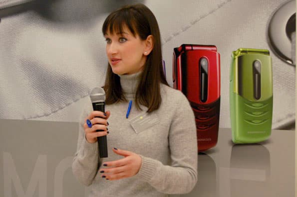О новой линейке мобильных телефонов Mandarina Duck Mobile Pack, выпущенных совместно с одноименной торговой маркой Mandarina Duck, рассказала Сильвия Рончи (Silvia Ronchi), бренд-менеджер продукта Brand Design Lab, одного из бизнес направлений Alcatel mobile phones.