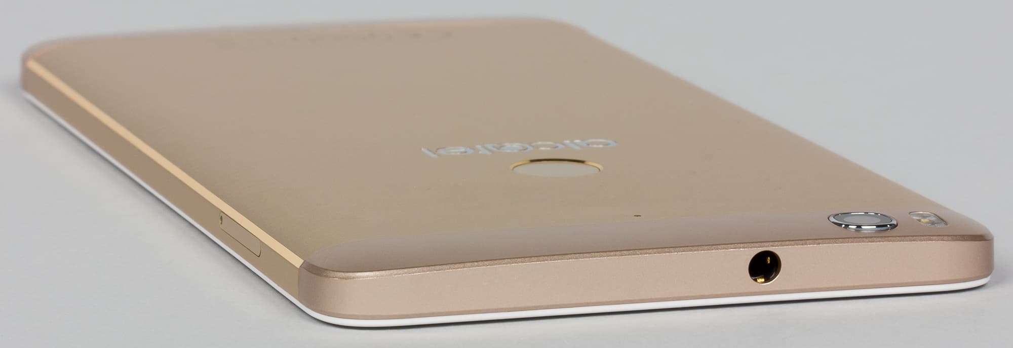 Верхний торец привычно отдан под 3,5-миллиметровый выход на наушники, а маленькое отверстие вспомогательного микрофона вынесено на тыльную сторону корпуса, ближе к площадке дактилоскопического датчика.