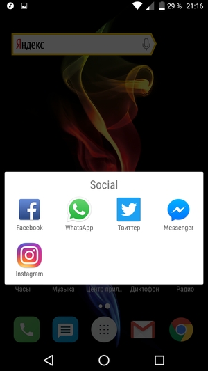 Сторонних приложений предустановлено немало: комплексная утилита Boost, браузер Opera Mini, пакет для работы с офисными программами WPS Office, приложения Яндекс, полный набор клиентов социальных сетей. Кроме того, традиционно для Alcatel имеется еще и собственный Центр приложений, в котором можно бесплатно скачать множество интересных программ, в том числе и кое-какие платные игры. В качестве клавиатуры предустановлена SwiftKey с возможностью безотрывного ввода.