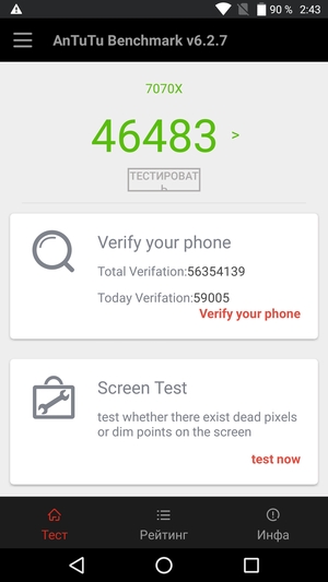 | AnTuTu (v6.x) (больше — лучше) | 46483 | 56991 | 44418 | 63146 | 43239 |