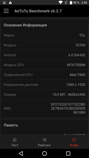 Основные характеристики Alcatel Pop 4 (6) (модель 7070X)