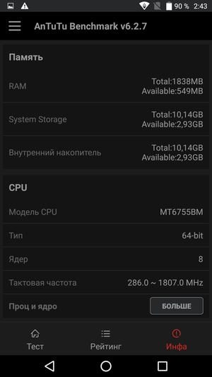 Яркость дисплея можно подстраивать вручную или использовать автоматическую настройку, основанную на работе датчика внешнего освещения. Тест AnTuTu диагностирует поддержку 5 одновременных касаний мультитач.