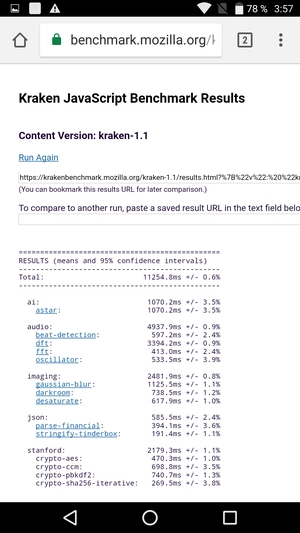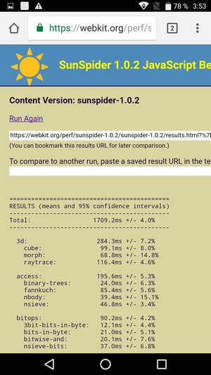 Что касается бенчмарков для оценки скорости движка javascript, то стоит всегда делать скидку на то, что в них результаты существенно зависят от браузера, в котором запускаются, так что сравнение может быть истинно корректным только на одинаковых ОС и браузерах, а такая возможность имеется при тестировании не всегда. В случае с ОС Android мы всегда стараемся использовать Google Chrome.