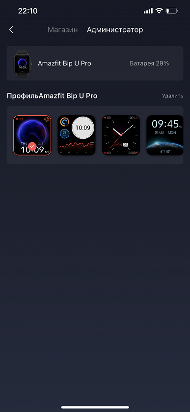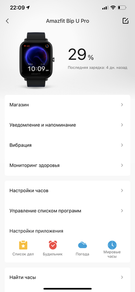 Ниже — два красноречивых скриншота: один мы взяли из статьи про Amazfit Bip S Lite, и на нем видно, что через 15 дней использования осталось 20% заряда. А на другом скриншоте, с Bip U Pro — 29% после 4 дней использования. При этом, чтобы разрядиться в ноль, им потребовалось после этого меньше суток. Но, как говорится, ничего удивительного: все дело в цветном, достаточно ярком экране, который куда более прожорлив, чем трансрефлективный.