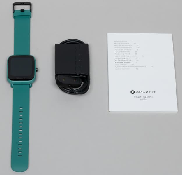 Внутри коробки — только сами часы, зарядный USB-кабель (без блока питания) и руководство на различных языках, включая русский.