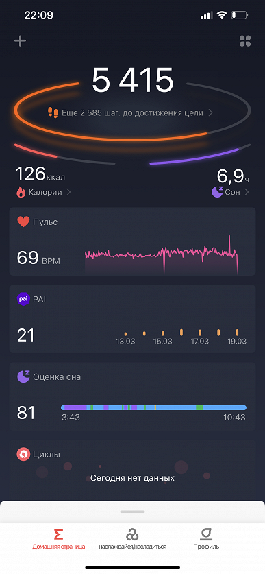 Из других вещей, которые стоит отметить — приложение Alexa, предназначенное, очевидно, для управления умными устройствами с голосовым помощником Amazon; Pomodoro Tracker, призванный научить концентрироваться и справиться с прокрастинацией; отслеживание женского цикла; а также, конечно, измерение SpO2. Последнее — уже весьма привычная для нас опция, и нам понравилось, что почти все измерения были удачными, но вот сказать, что результаты совершенно правдоподобны, мы не можем. Да, протестировать это по-настоящему надежно проблематично, но можно сделать несколько запусков подряд и посмотреть, есть ли разброс в результатах. В данном случае с разницей в несколько минут мы получили значения 99%, 100%, 95% и опять 99%. При норме — 95%—98%. Заметим, что 100% — это в принципе малореалистичный результат, но и 95% для здорового человека — тоже. На скриншоте ниже справа смотрите четыре верхних значения.