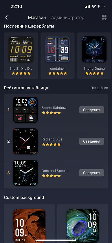 Кроме того, можно скачать различные циферблаты и настроить, какие из них будут доступны напрямую с часов.