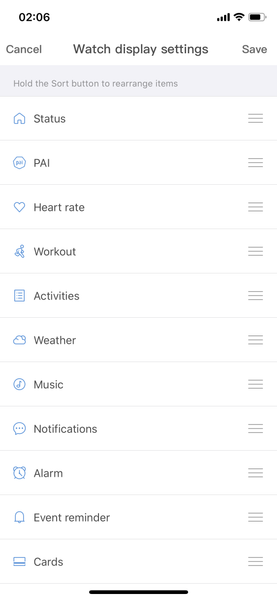 В отличие от упомянутых двух виджетов, число и порядок которых не поменять, общее вертикальное меню можно легко настроить на свой вкус. В приложении на смартфоне его пункты легко меняются местами, а ненужные можно даже убрать (не удалить, а просто скрыть).
