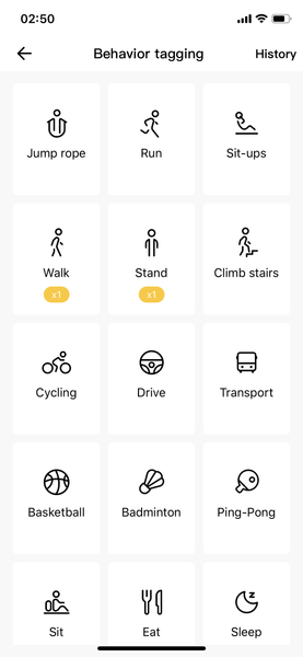 В приложении также имеется функция ведения собственной «поведенческой активности». Это выглядит так: идешь, скажем, чистить зубы, принимать душ или играть в пинг понг — нужно самостоятельно открыть приложение, нажать кнопку старта, а по окончании — остановить и записать весь процесс в табличку. Таким способом, кстати, можно мониторить и сон, но для сна есть и отдельный собственный мониторинг в авторежиме.