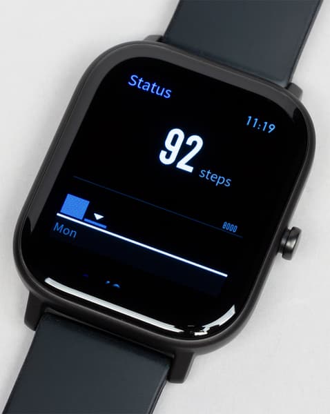 Экран у часов прямоугольный, с разрешением 348×442, что дает плотность точек около 341 пикселей на дюйм. В этом экране используется AMOLED-матрица — активная матрица на органических светодиодах. Дисплей прикрыт 2.5D-стеклом, то есть стекло чуть выпуклое и имеет покатые края. Диагональ составляет 1,65″.