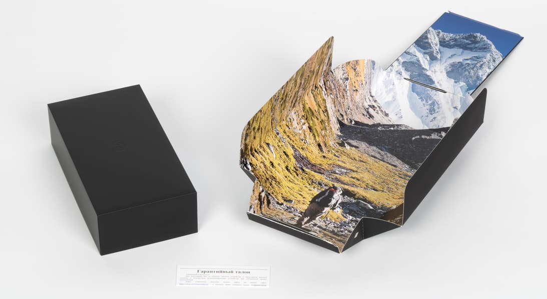 А главное — суперобложка снимается и под ней оказывается полностью черный бокс. Ну а на внутренней стороне суперобложки размещено изображение туриста в горах. Красиво!