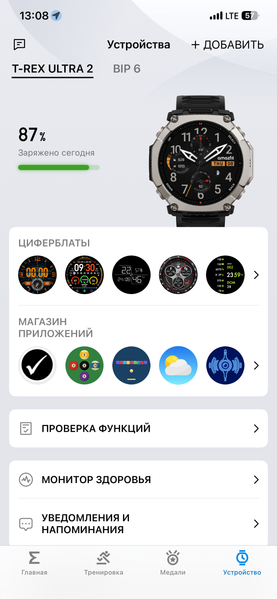 Для подсоединения часов к смартфон нужно использовать приложение Zepp, хорошо знакомое нам по ранее протестированным моделям Amazfit. Поэтому не будем описывать его интерфейс и сразу перейдем к функциональности часов.