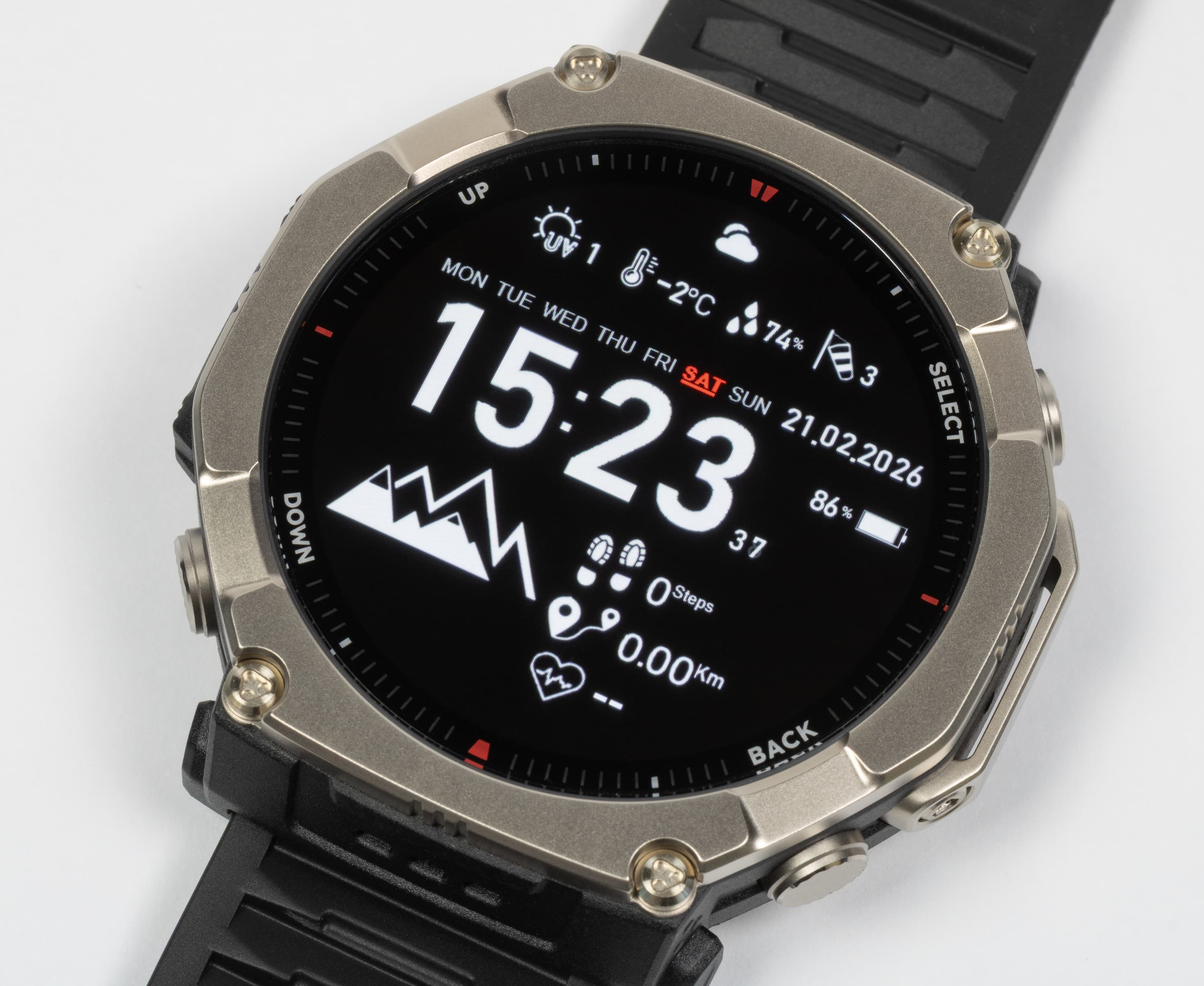Amazfit T-Rex Ultra 2 — устройство специфическое и ориентированное на довольно узкую аудиторию. Это мужчины, активно занимающиеся «диким» туризмом, походами и экстремальными видами спорта. Для подобного использования здесь есть всё необходимое: ударопрочный водонепроницаемый корпус (из титана, с сапфировым стеклом), встроенный LED-фонарик, большой экран с функцией AlwaysOn, отличные навигационные возможности, поддержка карт OpenStreetMap, а также инструмент для создания собственных маршрутов, барометр, альтиметр (высотометр), четыре физические кнопки, позволяющие управлять устройством в воде или в перчатках, практически не задействуя сенсорный дисплей... Есть и общие преимущества: прекрасная автономность, широкий выбор сторонних приложений и циферблатов.