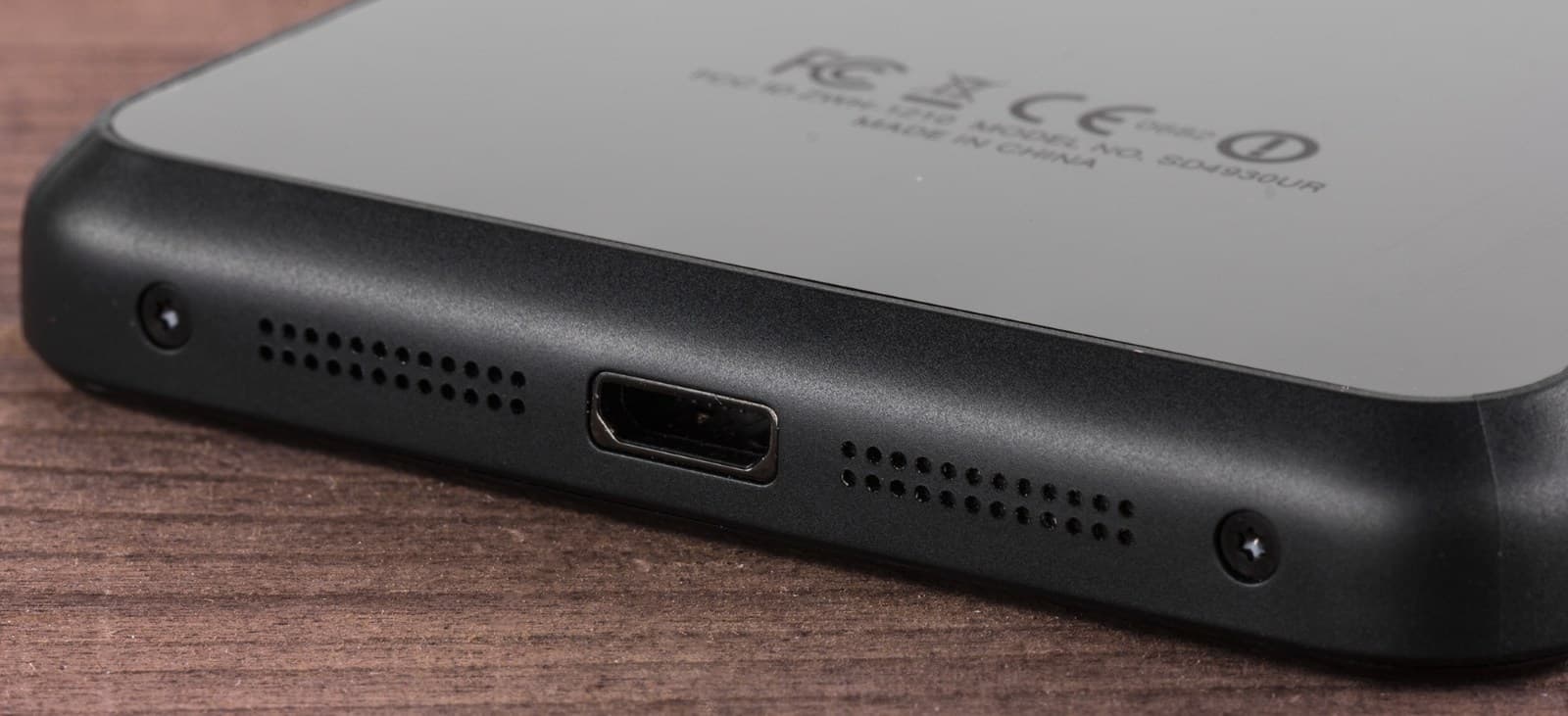 Фото с этого ракурса в инсинуациях не нуждается: подобная симметричная нижняя грань уже давно ассоциируется со смартфоном компании Apple. Но в отличие от iPhone, аналогичный громкоговоритель имеется здесь и сверху, что позволяет говорить о наличии в устройстве стереодинамиков. Посередине находится разъем Micro-USB, причем, как мы заметили, для него подойдет не каждый сторонний кабель: провод с чуть более длинным коннектором не сможет закрепиться внутри.