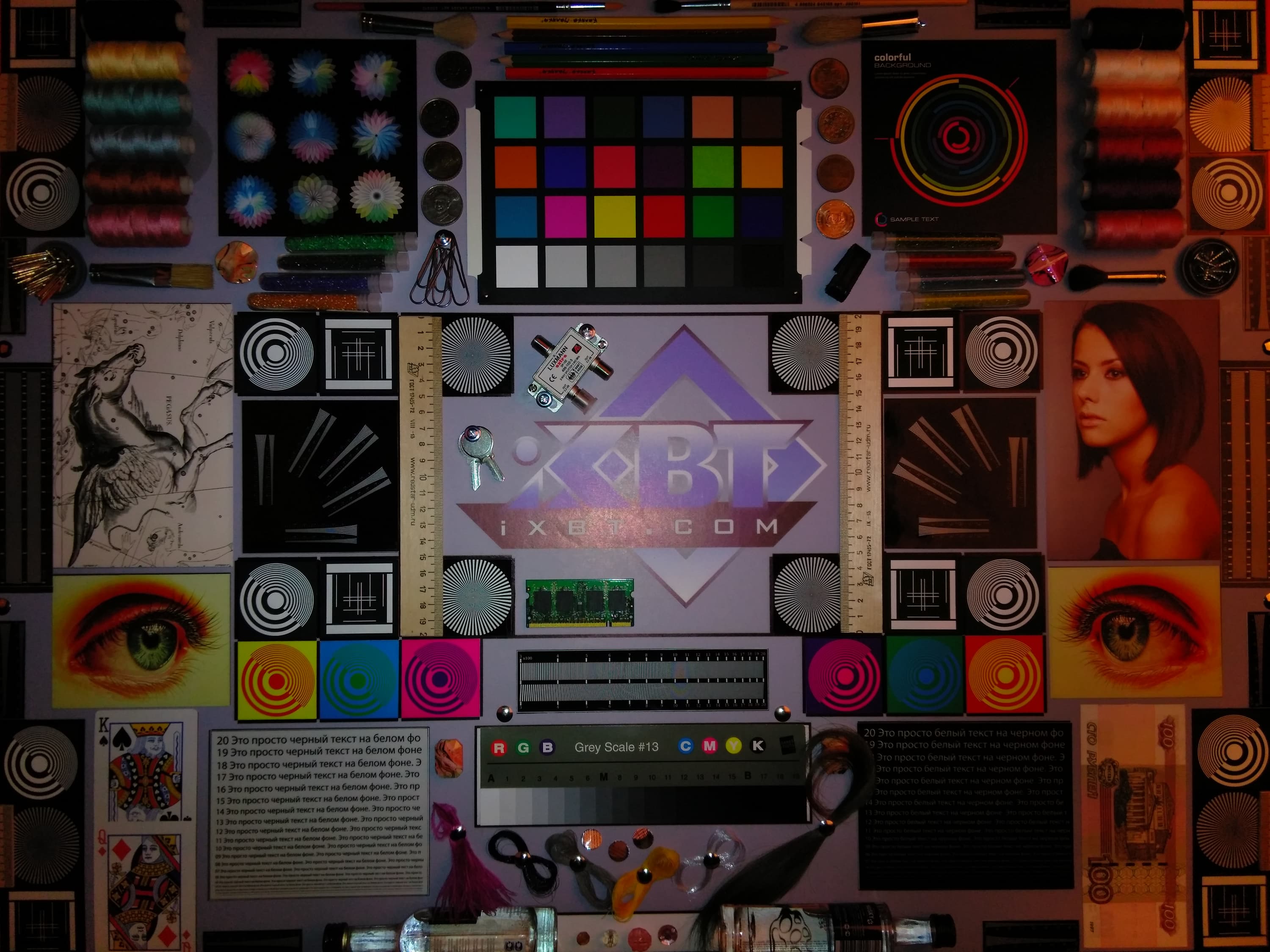 Отметим хорошую равномерность яркости и цветового тона белого поля. И тестовая картинка: