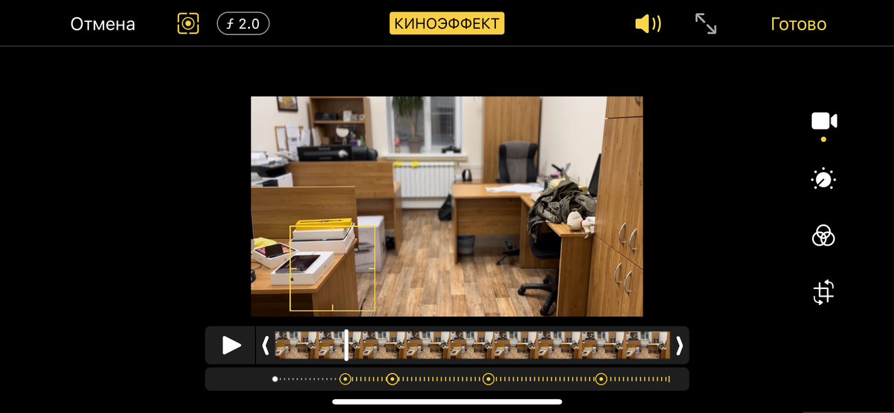 Снимать в режиме «Киноэффект» можно пока только с разрешением 1080р@30 к/с, а файл получается примерно в полтора раза «тяжелее», чем если снять в том же разрешении в обычном режиме. Зато в приложении «Фото» его действительно можно редактировать, меняя фокус, и это — вау!