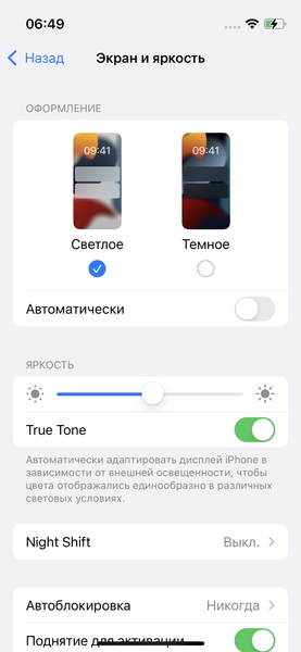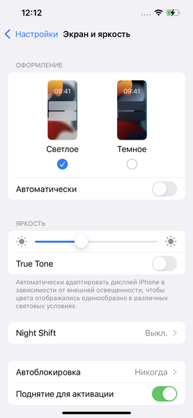 Присутствует функция True Tone, которая, если ее включить, подстраивает цветовой баланс под условия окружающей среды. Мы включили эту функцию и проверили, как она работает: