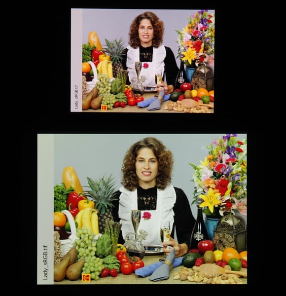 При сильном изменении условий освещенности подстройка цветового баланса выражена слабо, поэтому с нашей точки зрения эта функция не работает так, как нужно. Отметим, что сейчас сложившимся стандартом является калибровка устройств отображения к точке белого в 6500 К, но в принципе, коррекция под цветовую температуру внешнего света может принести пользу, если хочется добиться лучшего соответствия изображения на экране с тем, что видно на бумаге (или на любом носителе, на котором цвета формируются за счет отражения падающего света) в текущих условиях.