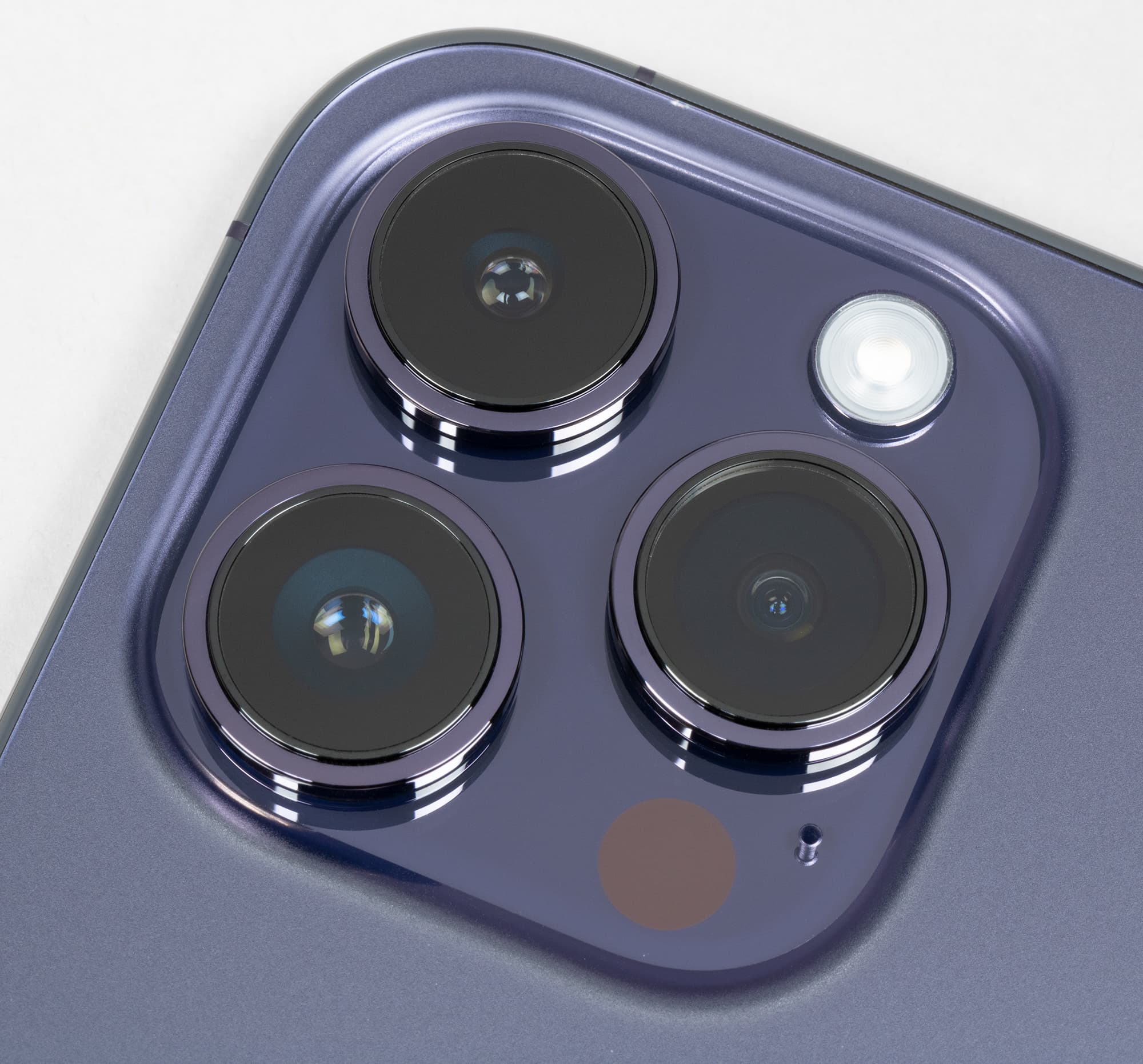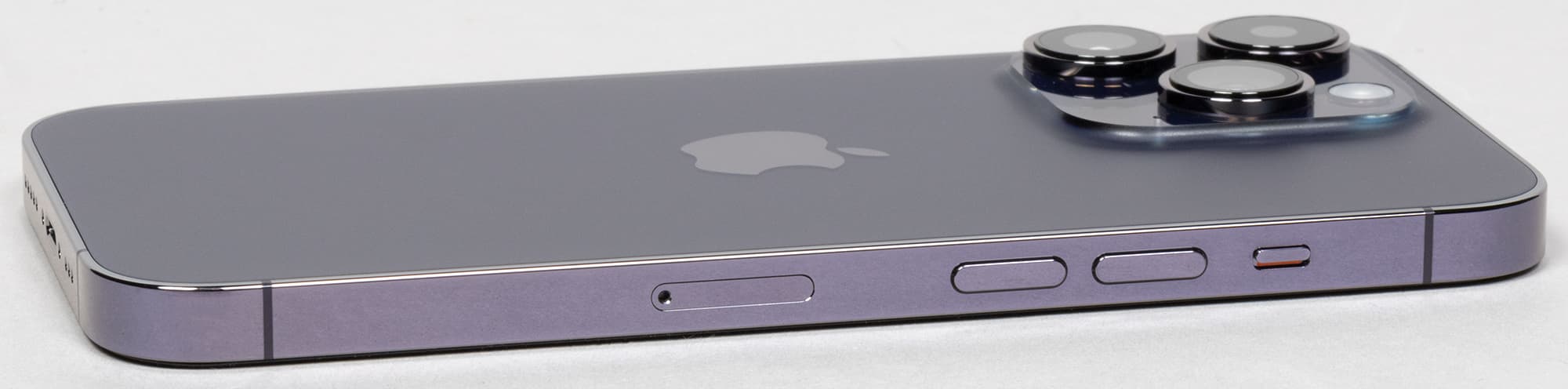 Но — идем дальше. Вторая важная особенность iPhone 14 Pro — увеличившийся блок камер. Говоря об iPhone 13 Pro, мы отмечали, что и блок, и глазки камер стали больше, чем у iPhone 12 Pro. Теперь и то, и другое еще подросло. Размер площадки по горизонтали составил 37 мм (при 35 мм у iPhone 13 Pro и 32 мм у iPhone 12 Pro), а для глазков получилось 16, 13 и 11 мм соответственно.
