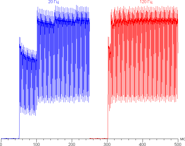 Видно, что на максимальной и средней яркости амплитуда модуляции не очень большая (точнее скважность явно низкая), в итоге видимого мерцания нет. Однако при сильном понижении яркости появляется модуляция с большой относительной амплитудой (и высокой скважностью), ее наличие уже можно увидеть в тесте на присутствие стробоскопического эффекта или просто при быстром движении глаз. В зависимости от индивидуальной чувствительности такое мерцание может вызывать повышенную утомляемость. Впрочем, частота довольно высокая и фаза модуляции различается по площади экрана, поэтому негативный эффект от мерцания снижен.
