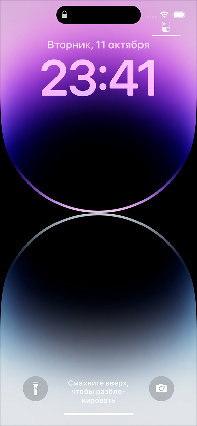 Но когда экран заблокирован, то полоска расширяется — и вот мы уже видим на ней значок замочка.