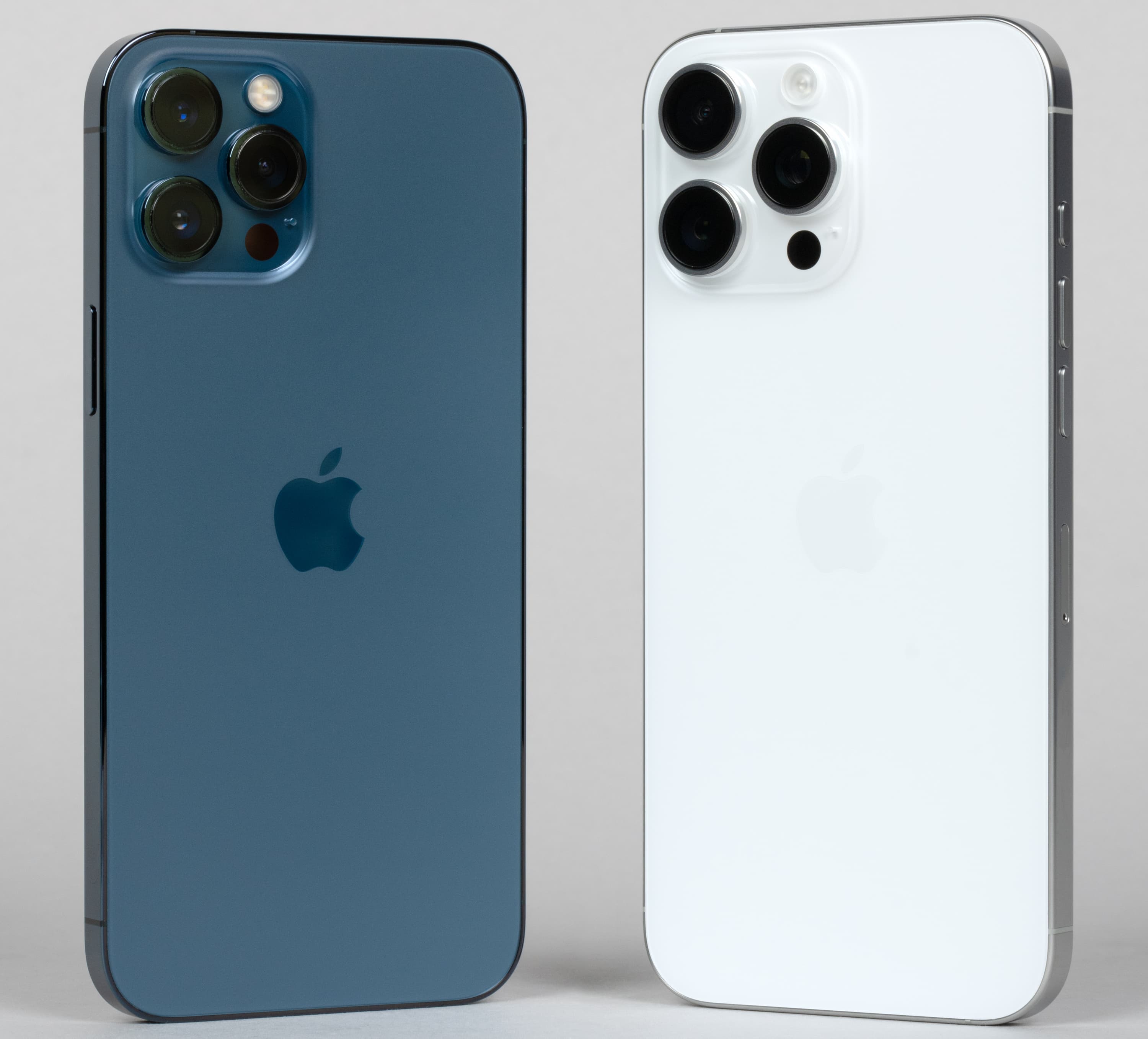 Помимо появления Camera Control есть и еще одно видимое невооруженным взглядом отличие iPhone 16 Pro от iPhone 15 Pro: уменьшившаяся рамка вокруг экрана, благодаря чему как раз и удалось увеличить полезную площадь на две десятых дюйма по диагонали. Для наглядности мы поместили рядом с новинкой iPhone 12 Pro Max, и здесь всё понятно без комментариев.