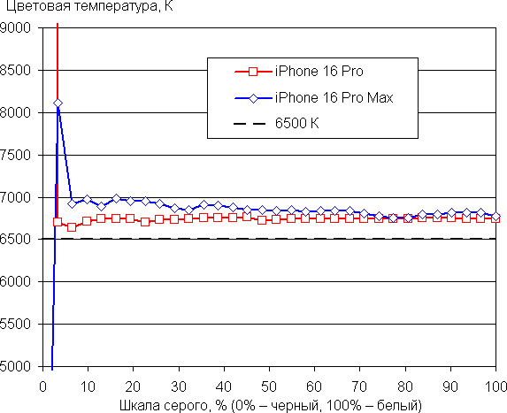 | Функция True Tone выключена | 6700/6700 | 2,8/3,4 |