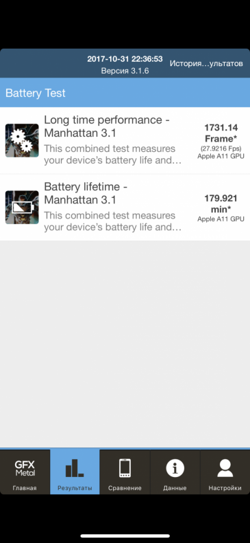 У нас пока не было возможности попользоваться iPhone X в реальной жизни (это нам еще предстоит), поэтому сказать, сколько он будет работать в повседневных сценариях, не можем. Но судя по игровому тесту, результат у него не хуже, чем у «плюсов». Понятно, что речь идет о максимальной нагрузке, и в других ситуациях расклад может быть иным. Но эти цифры очень даже обнадеживают.