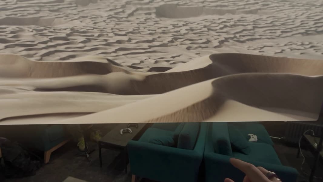 Теперь поделимся, наконец, нашими впечатлениями от пребывания в виртуальном мире Vision Pro. Строго говоря, в данном случае уместно говорить не только о VR, но о странном гибриде VR и AR. И по принципу работы Vision Pro существенно отличается от всех VR-гарнитур, с которыми мы прежде сталкивались. Ключевых отличий два. Во-первых, вам не требуется для управления никаких приспособлений, кроме собственных пальцев и глаз. И во-вторых, Vision Pro не изолирует вас от реального мира, но позволяет гибко выбрать оптимальную степень погружения в виртуальную реальность.