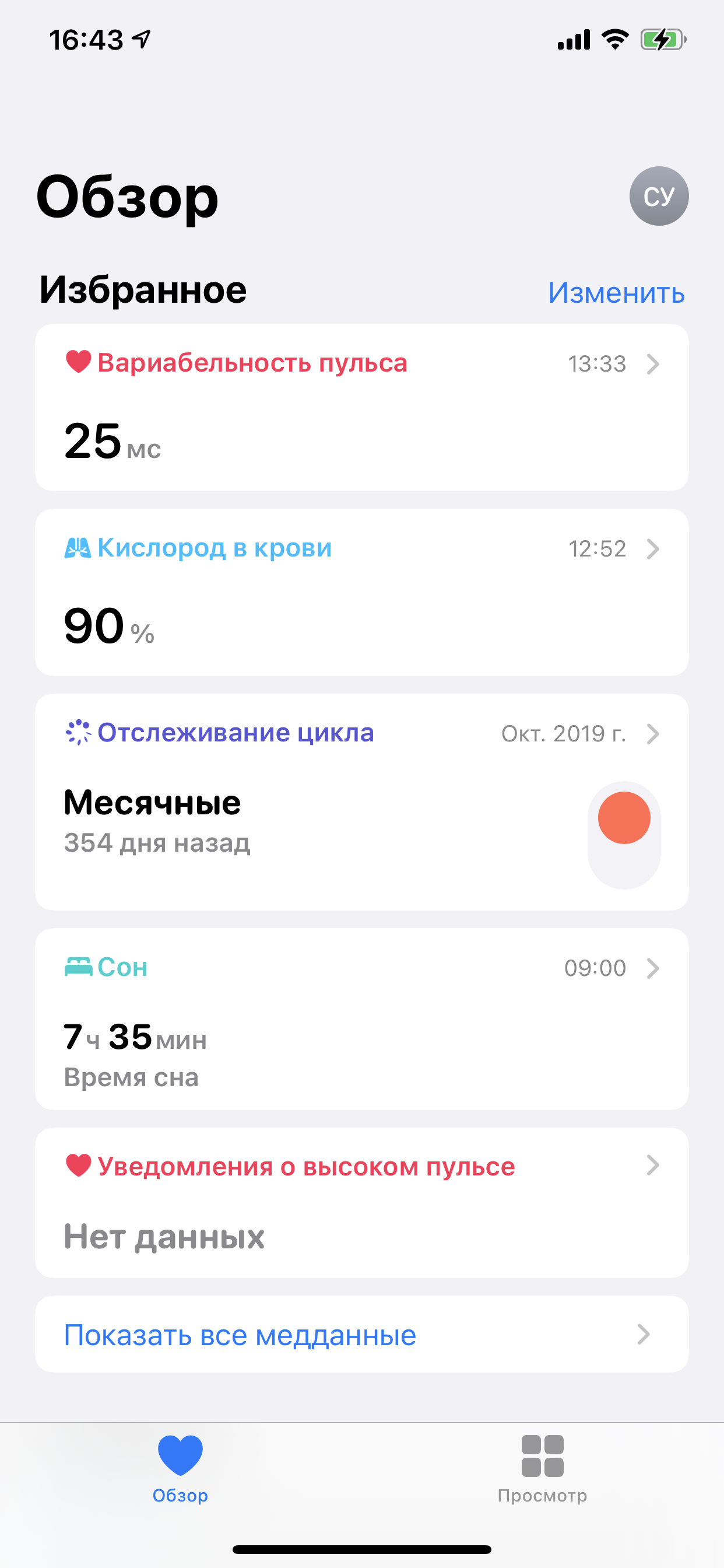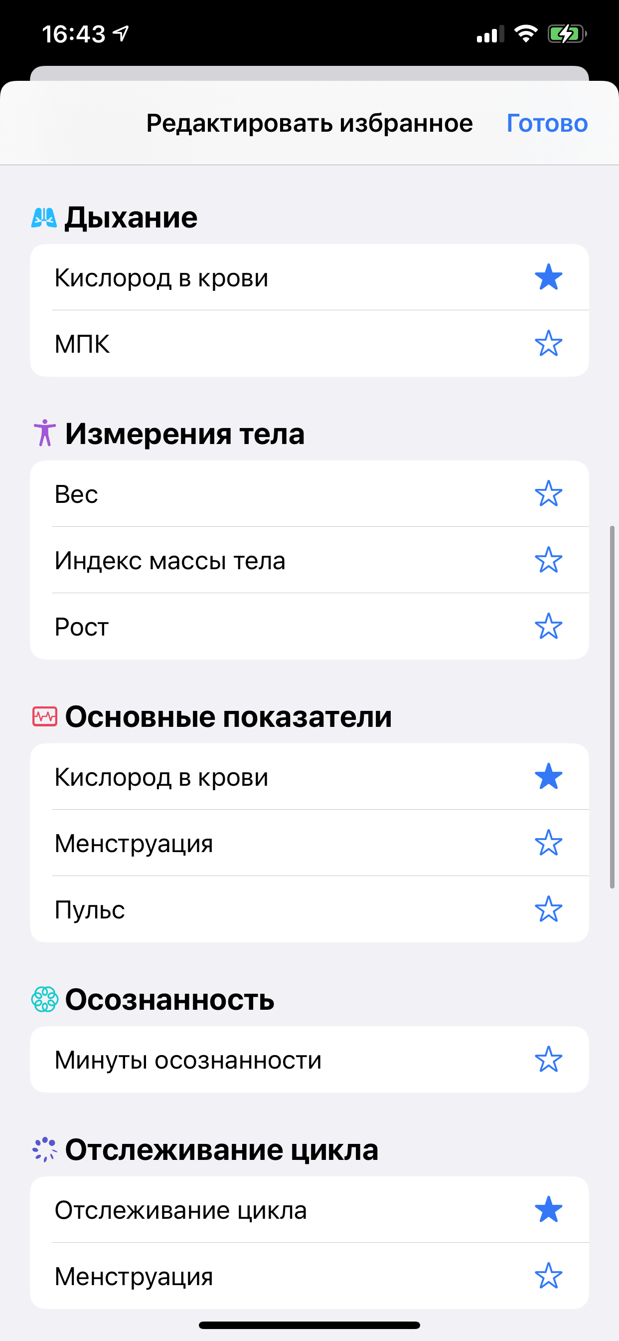 Непонятно, зачем надо было прятать это так глубоко, если в новом флагманском продукте Apple это ключевая возможность. Но, справедливости ради, отметим, что можно нажать на кнопку «Изменить» напротив заголовка «Избранное» в разделе «Обзор», и там отметить звездочкой «Кислород в крови». Тогда он будет показываться на главном экране приложения.