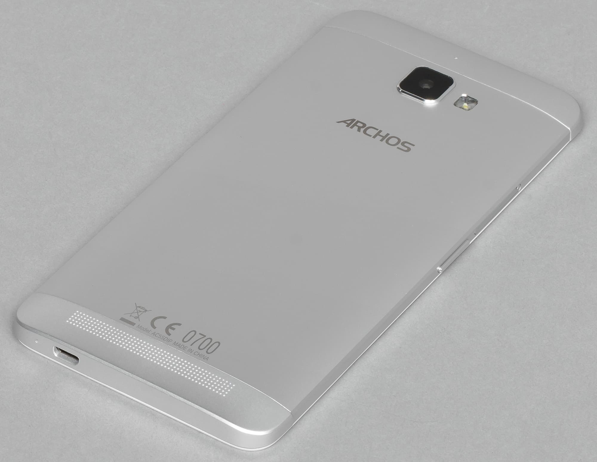 Бо́льшая часть корпуса здесь выполнена из алюминия, но боковые вставки на торцах все же пластиковые. Именно в пластмассовых, а не металлических сегментах корпуса вырезаны все отверстия под разъемы и микрофоны, именно пластик защищает углы при ударах и падениях. Так что корпус Archos Diamond Plus нельзя с полным правом назвать цельнометаллическим, но так сейчас устроено большинство металлических корпусов современных мобильных устройств. Пластиковые вставки необходимы для того, чтобы металл не экранировал антенны коммуникационных модулей.