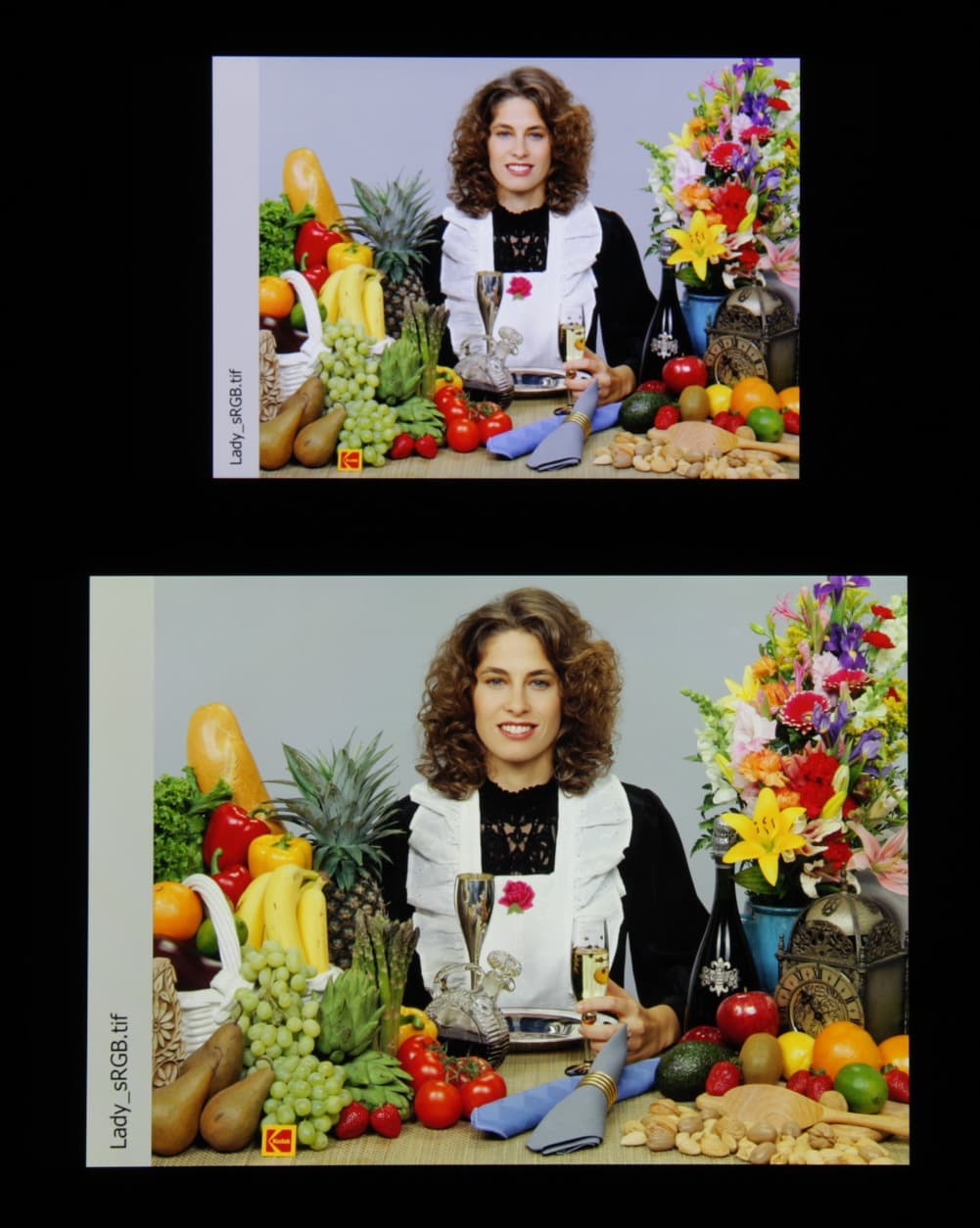 Отметим хорошую равномерность яркости и цветового тона белого поля. И тестовая картинка: