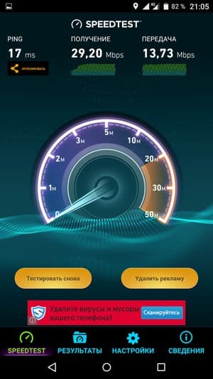 Смартфон Archos Diamond Plus стандартно работает в современных сетях 2G GSM и 3G WCDMA, а также имеет поддержку сетей LTE Cat.4 с теоретической максимальной скоростью до 150/50 Мбит/c. С FDD LTE смартфон может работать на частотах 800/1800/2600 МГц, то есть функционирует во всех трех наиболее распространенных у российских операторов диапазонах Band 3, 7 и 20. На практике с SIM-картой оператора МТС аппарат уверенно регистрировался и работал в сетях LTE московского региона. В целом качество приема сигнала сотовых сетей особых нареканий не вызывает, аппарат уверенно поддерживает связь в помещениях и не теряет сигнал в зонах неуверенного приема.