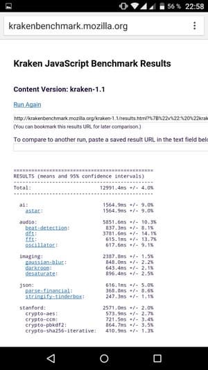 Что касается бенчмарков для оценки скорости движка javascript, то стоит всегда делать скидку на то, что в них результаты существенно зависят от браузера, в котором запускаются, так что сравнение может быть истинно корректным только на одинаковых ОС и браузерах, а такая возможность имеется при тестировании не всегда. В случае с ОС Android мы всегда стараемся использовать Google Chrome.