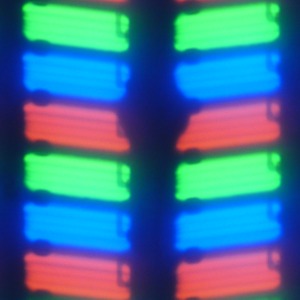 В данном смартфоне используется матрица типа IPS. Микрофотографии демонстрируют типичную для IPS структуру субпикселей:
