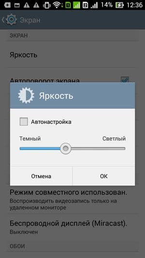 При ручном управлении яркостью и при выводе белого поля во весь экран максимальное значение яркости составило около 385 кд/м², минимальное — 50 кд/м². Максимальная яркость не очень высокая, но, учитывая отличные антибликовые свойства, читаемость даже в солнечный день вне помещения будет достаточно хорошей. В полной темноте яркость можно понизить до комфортного значения. В наличие автоматическая регулировка яркости по датчику освещенности (находится справа от фронтальной камеры). В автоматическом режиме при изменении внешних условий освещенности яркость экрана как повышается, так и понижается. Работа этой функции как-то зависит от положения ползунка регулировки яркости. Как-то потому, что в автоматическом режиме ползунок двигается сам, но при этом его можно передвигать и вручную. Если ползунок пальцем доводится до 100%, то в полной темноте функция автояркости фактически отключается — яркость остается на максимуме, на 385 кд/м². Если он на 50%, то в полной темноте функция автояркости уменьшает яркость до 130 кд/м² (многовато), в условиях освещенного искусственным светом офиса (около 400 лк) яркость остается на тех же 130 кд/м² (это уже нормально), в очень ярком окружении (соответствует освещению ясным днем вне помещения, но без прямого солнечного света — 20000 лк или немного больше) яркость повышается до 385 кд/м² (до максимума — так и нужно); если регулировка на 0%, то значения следующие: 50, 50 и 385 кд/м² (приемлемые величины, хотя в «офисе» экран темноват). Странности в работе этой функции обусловлены как неочевидным способом подстройки, так и тем, что датчик освещенности не различает между 0 и 400 лк, то есть и в полной темноте, и в «офисе» датчик выдает значение 0. Брак или производитель сэкономил на нормальном датчике. На любом уровне яркости модуляция подсветки практически отсутствует, поэтому нет и никакого мерцания экрана.