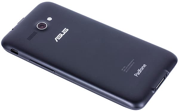 На матовой поверхности практически не остается отпечатков пальцев — корпус у Asus Padfone Е получился совершенно не маркий. Смартфон имеет достаточно комфортные для среднестатистической руки габариты — подойдет и для кармана брюк, и даже в нагрудном кармане рубашки поместится. В руке за счет прорезиненной поверхности корпуса смартфон удерживается надежно и комфортно, этому же способствуют небольшие толщина и масса устройства.