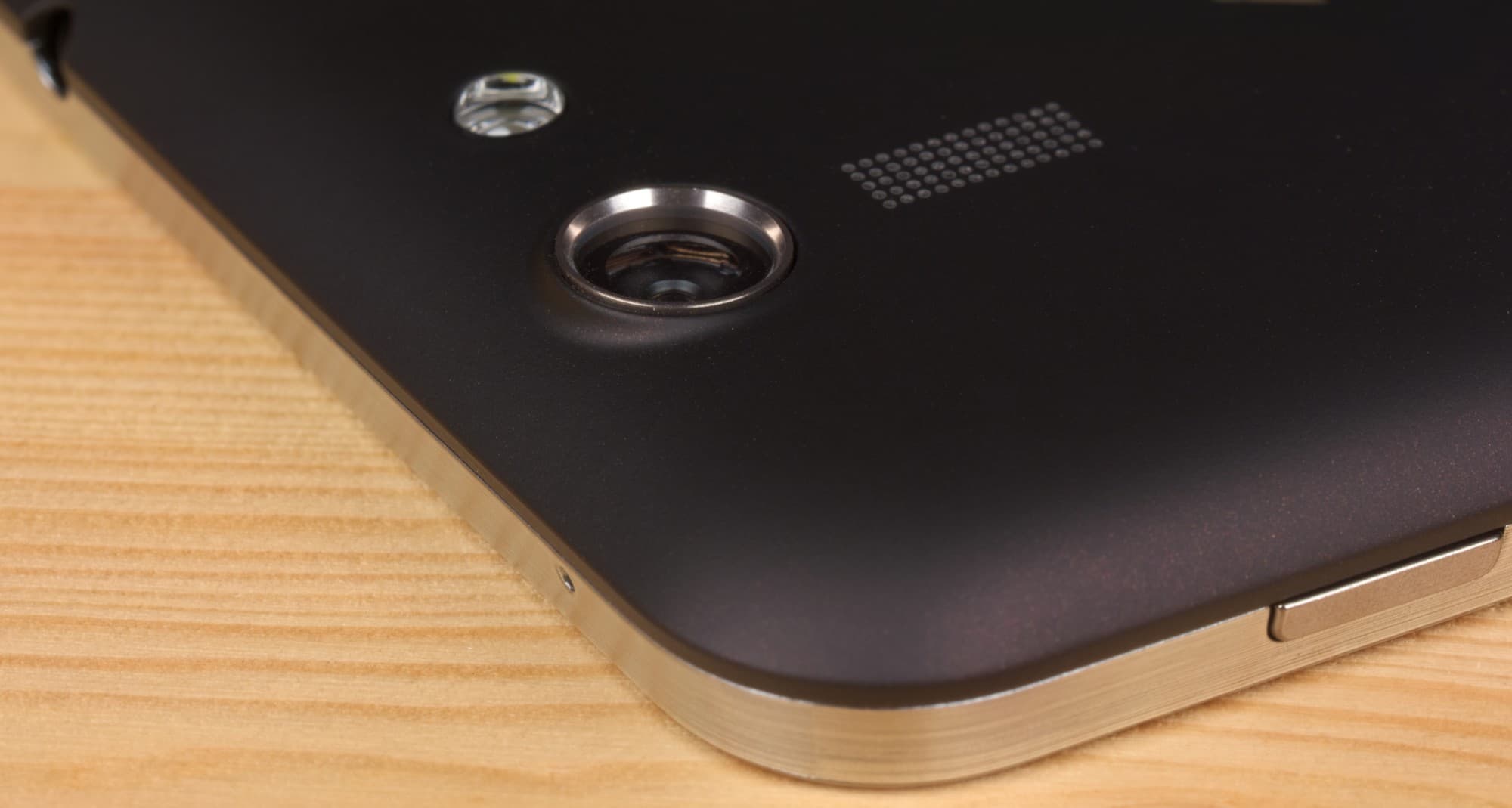 На задней крышке мы видим камеру (причем глазок объектива очень сильно утоплен вглубь устройства — видимо, для защиты от возможных падений и ударов), светодиодную вспышку и решетку динамика. Кнопки питания и регулировки громкости расположились на правой грани: ими вполне удобно пользоваться большим пальцем правой руки. Нажатие вполне комфортное.