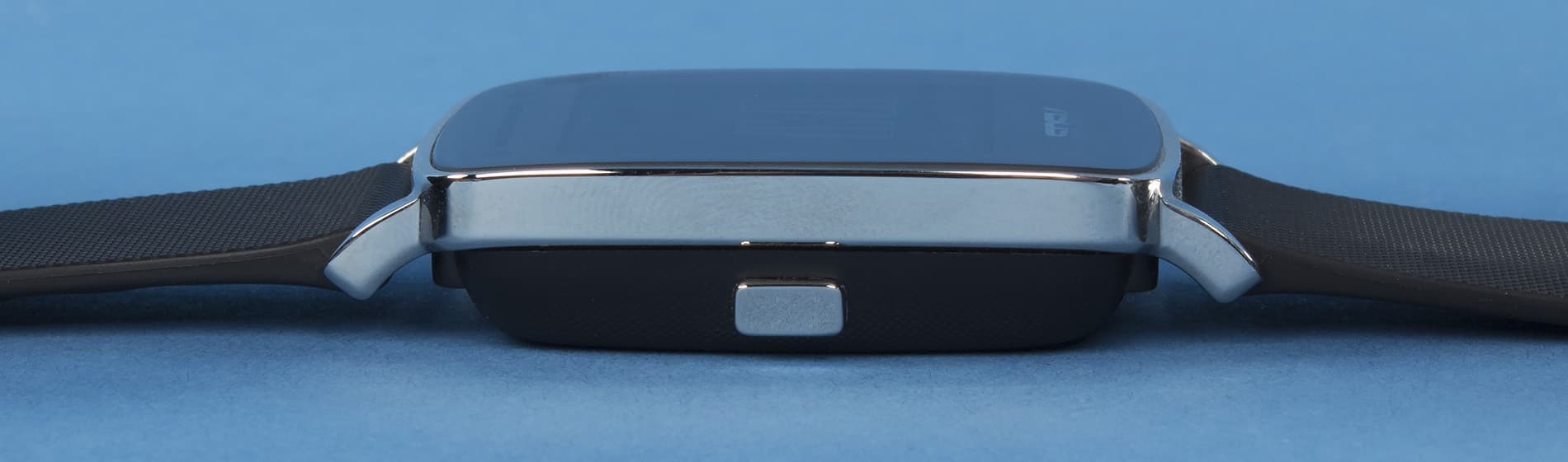 На фотографиях выше видно, что стекло, защищающее экран, немного скругляется ближе к ободку. Это красивый эффект, который мы видели и у ZenWatch. А вот крупной кнопки Home на ZenWatch не было. У VivoWatch эта кнопка, выполненная из металла, располагается на правой грани, имеет прямоугольную форму и нажимается с заметным усилием.