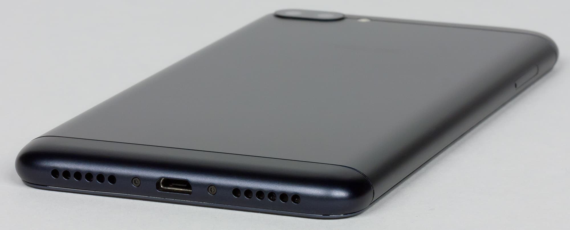 В нижнем торце проделаны два симметричных ряда отверстий, за одним из них скрывается громкоговоритель. Посередине установлен универсальный разъем Micro-USB, поддерживающий подключение внешних устройство в режиме USB OTG и реверсную зарядку других устройств от аккумулятора смартфона.