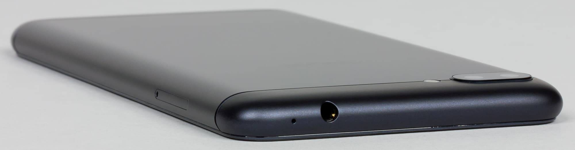 Карточки вставляются в боковой разъем слева. Он здесь не совсем обычный, тройной: в него на единых салазках въезжают две карты Nano-SIM и карта памяти microSD.