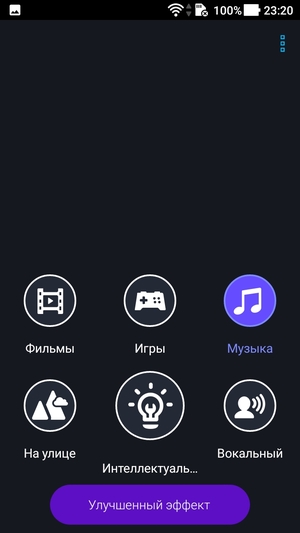 Для прослушивания музыки предназначен штатный проигрыватель Google Music с предустановками звуковых профилей («фильмы», «игры», «музыка», «улица» и т. д.) и возможностями ручной настройки эквалайзера. Звучит смартфон и в наушниках, и через динамик средне: звук не очень громкий, более-менее чистый, но не насыщенный, не яркий, да и низких частот практически нет.